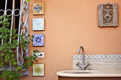 The issue: two terraces connected by a staircase, are actually very little communicating, both visually and functionally. The architectural required aims to reassemble the two spaces, now separated, and establish one new complex space. The issue is resolved through a complex organization of the new roofs. The same shells are mechanized and retractable: within seconds, from all closed and shaded, you can move to have the beautiful sundeck. In the same space environments has been studied a certain standardization of details and materials. The love of the customers for the typical elements of Italian ceramic, Vietri and Deruta in particular, led to the choice to decorate the wall surfaces, in a light and rhythmic way, respecting the parameters of the composition on the scene.